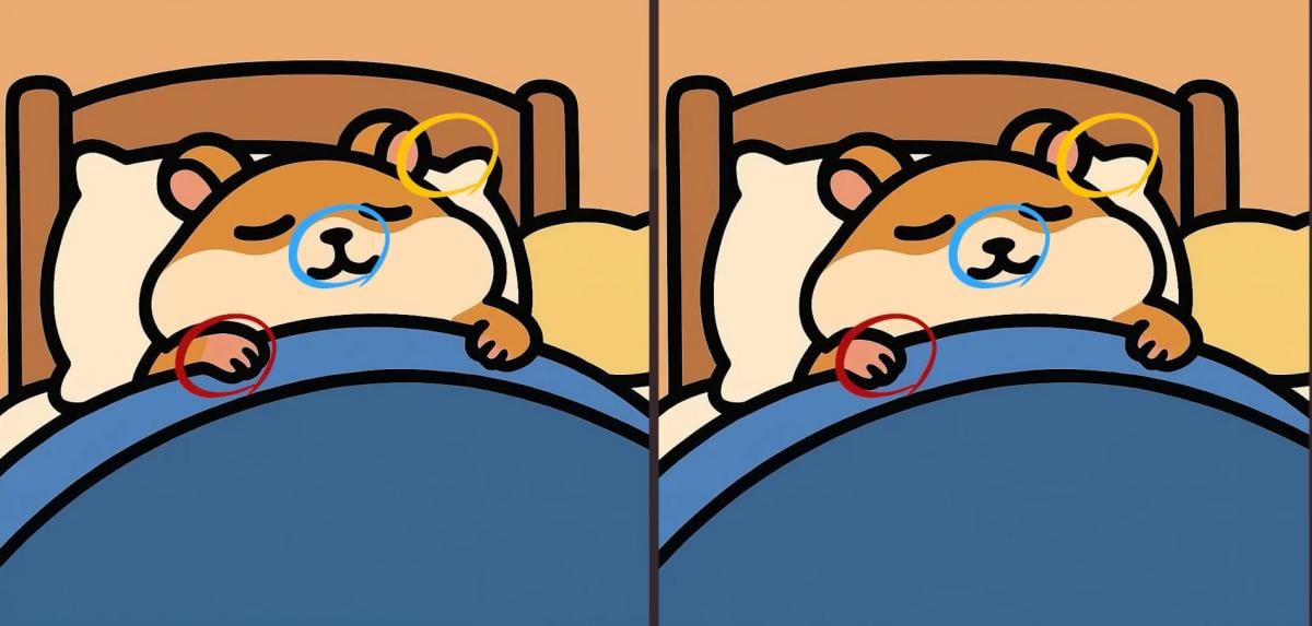 Tak co, jste připraveni na další výzvu? Podívejte se pozorně na dva obrázky spícího křečka. Na první pohled mohou vypadat stejně, ale jsou mezi nimi tři malé rozdíly. Myslíte si, že je všechny najdete za 29 sekund? Zkuste to a otestujte svou ostrost zraku!