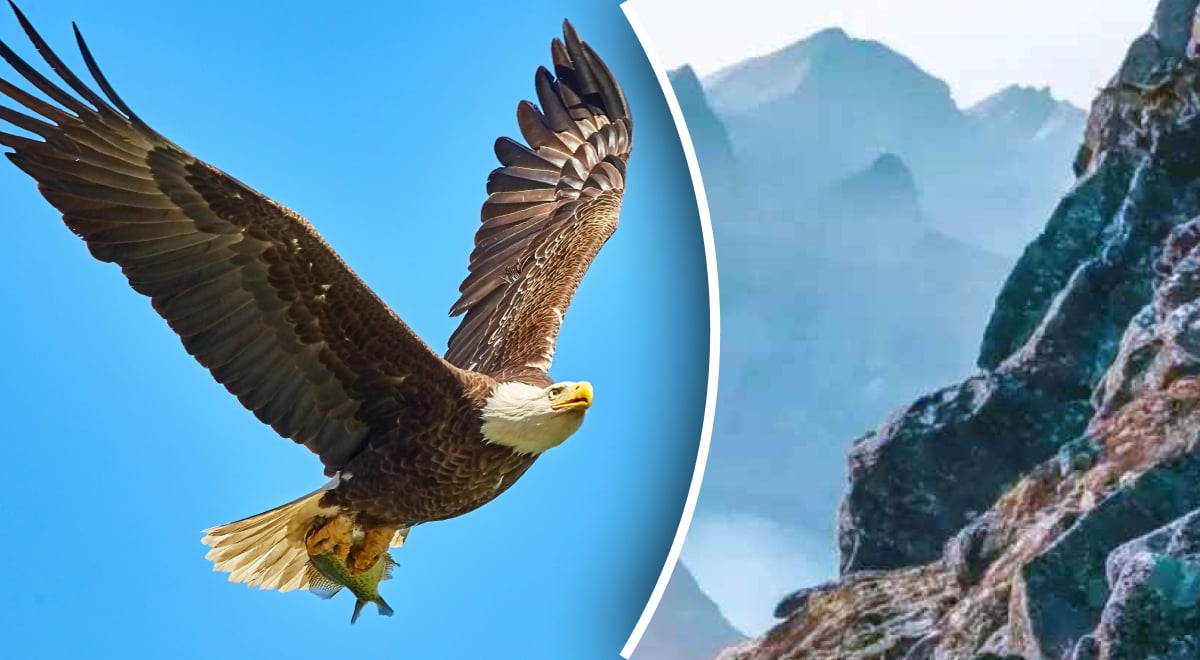 Najít orla v horách trvá 6 sekund / koláž: Glavred, foto: unsplash.com