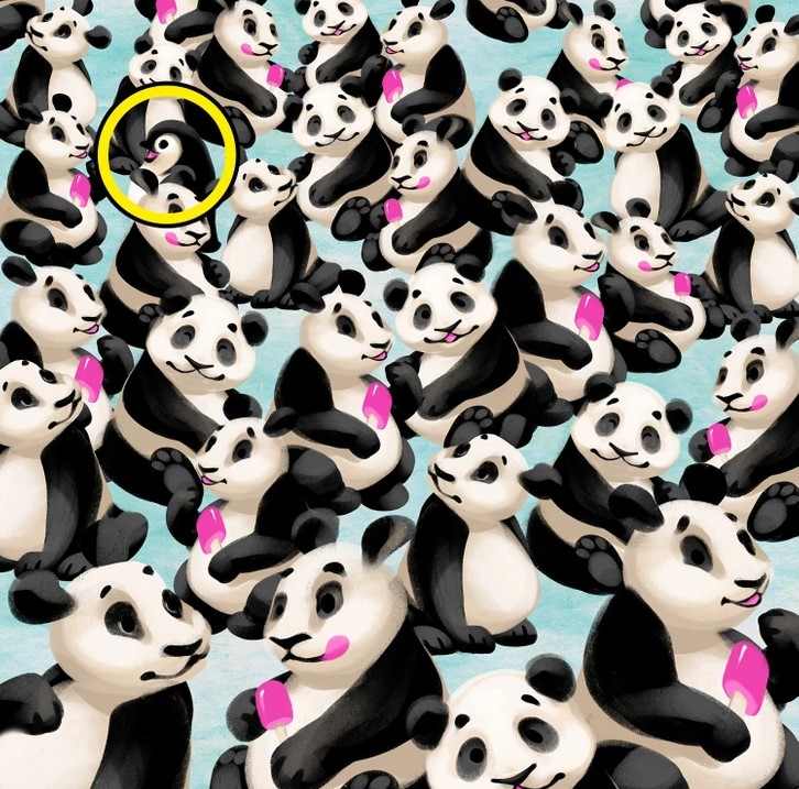 Když se den co den nudíte a pracovní rutina vás zbavuje veškerého nadšení, zkuste řešit hádanky. Zábavné optické iluze vám vykouzlí úsměv na tváři a procvičí vaši pozornost. Tentokrát je třeba najít tučňáka mezi pandami.