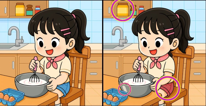 Tak co, jste připraveni na další výzvu? Podívejte se pozorně na dva obrázky dívky hnětoucí těsto na dort. Na první pohled mohou vypadat stejně, ale jsou mezi nimi tři malé rozdíly. Myslíte si, že je všechny najdete za 51 sekund? Zkuste to a otestujte svou ostrost zraku!
