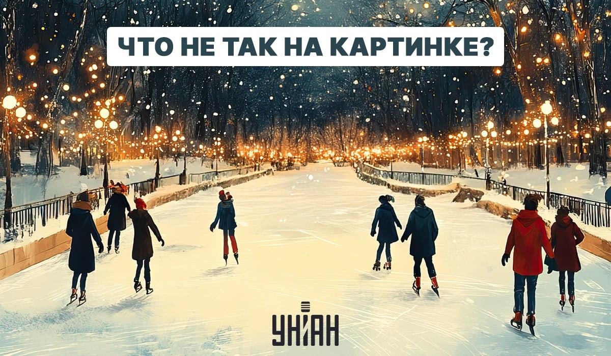 Před vámi je obrázek, na kterém je zobrazeno kluziště s návštěvníky. Krásná krajina v zimní scenérii se na první pohled zdá být dokonalá. Ve skutečnosti se v ní však skrývá hrubá chyba.